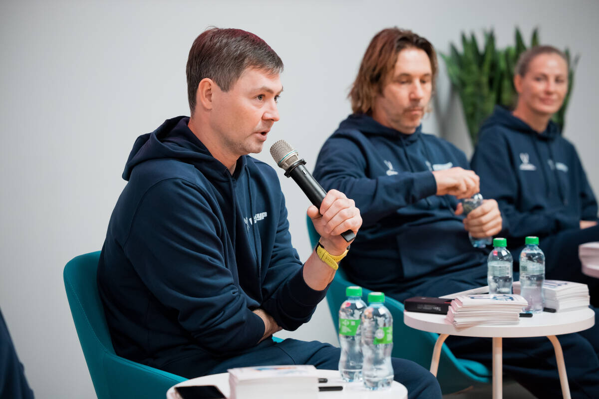 Динияру Билялетдинову, разумеется, были адресованы в основном вопросы про его выдающийся период карьеры в Англии. Напомним, несколько сезонов полузащитник выступал за «Эвертон», будучи одной из самых ярких фигур в клубе. Александра Маменко и Светлану Думич расспрашивали о феномене медиафутбола и о том, насколько это явление сейчас интересует как молодежь, так и поколение постарше. Эльвиру Тодуа, как футболистку ЦСКА, не могли не спросить про успехи мужского клуба армейцев в этом сезоне РПЛ.