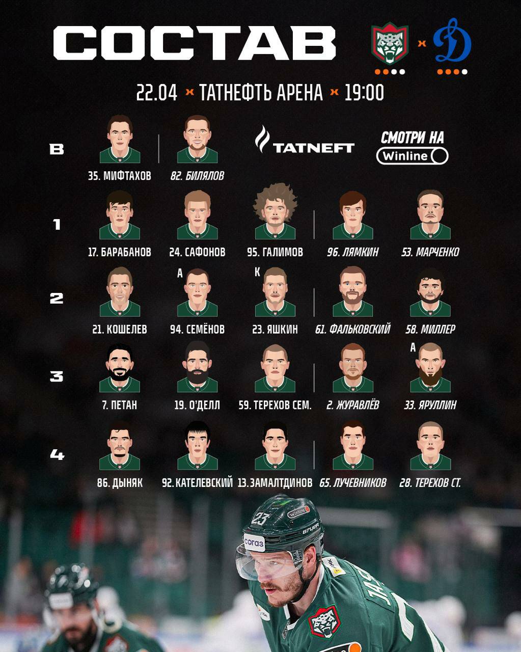 Казанский «Ак Барс» объявил состав на шестой поединок четвертьфинальной серии с московским «Динамо».