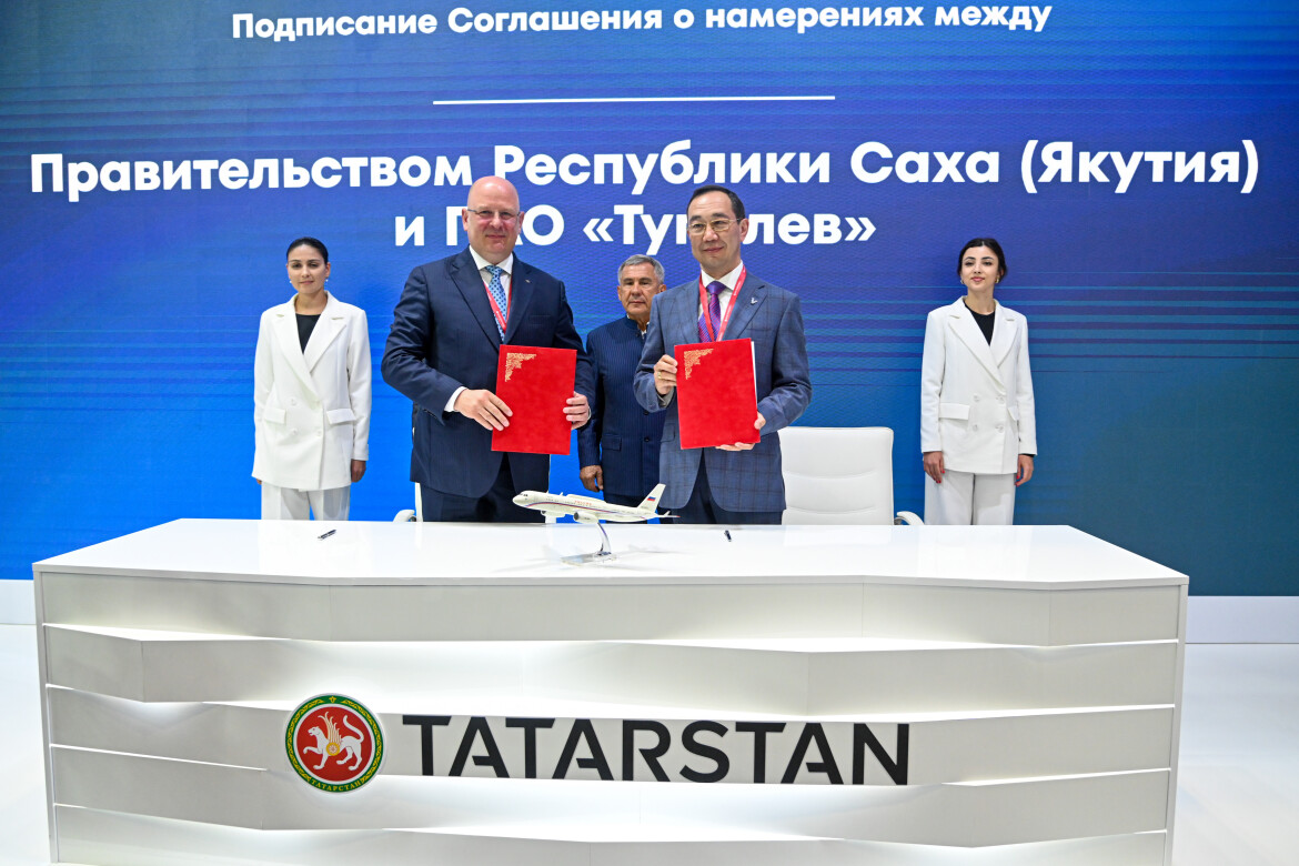 Сегодня же на полях ПМЭФ подписано соглашение намерениях между Правительством Якутии и «Туполевым» (Рустам Минниханов возглавляет совет директоров компании) на поставку самолетов Ту-214, которые производятся на Казанском авиационном заводе им.С.П. Горбунова.