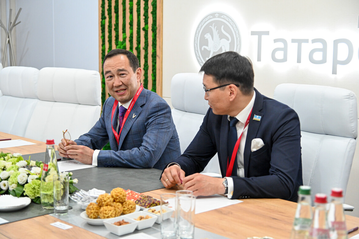 Множество встреч Рустам Минниханов провел с главами регионов РФ. Например, он пообщался с руководителем Республики Саха (Якутия) Айсеном Николаевым, который предложил рассмотреть вопрос о проведении в регионе федерального Сабантуя.