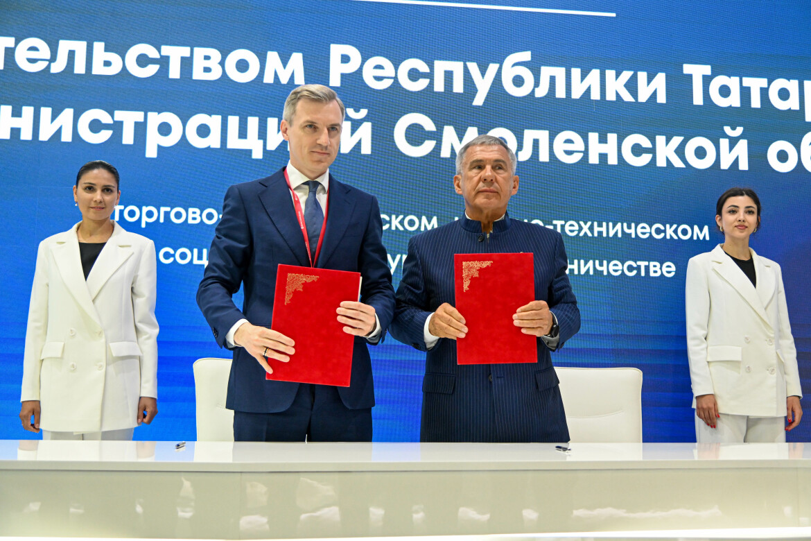 Еще одно соглашение подписано в ходе встречи с врио губернатора Смоленской области Василием Анохиным. В его команду на днях перешел Алмаз Ахметшин в ранге вице-губернатора, до этого он возглавлял Нурлатский район Татарстана. Через своего «представителя» республика готова делиться с областью опытом, например, в сфере госуправления, инвестиционной деятельности и других.