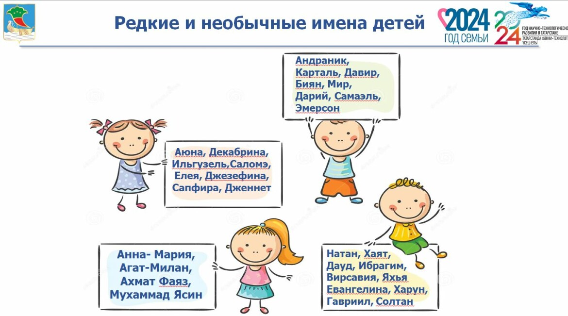 Начальник управления ЗАГС Набережных Челнов Равиля Зарипова на аппаратном совещании озвучила список редких и популярных имен, которыми горожане называют своих малышей.
