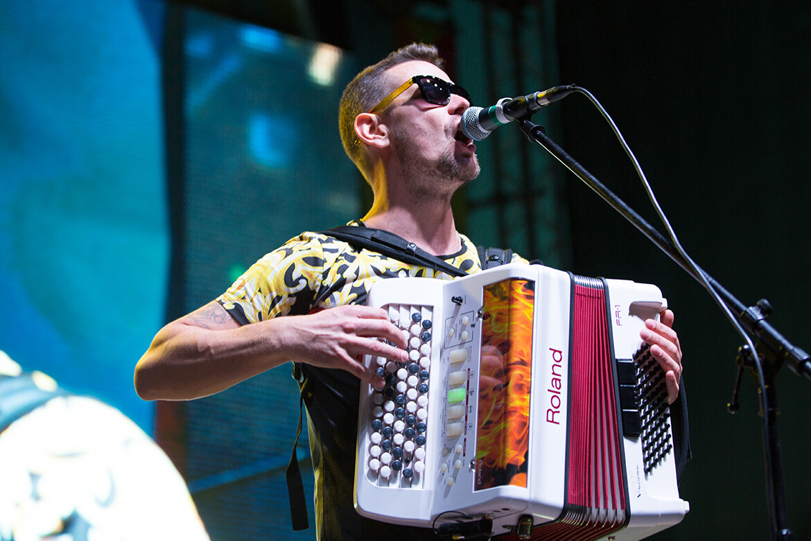 Всем известно, что «Волга-Волга» делает часто стебную переделку, и само появление песен «Музыка нас связала» или «Знаешь ли ты» на рок-фестивале изначально как будто бы странно. В итоге мы выступали фактически в первый основной и самый мощный день – после того, как основные хедлайнеры этого дня – группа «Сплин» – отыграли свою программу. Все ждали этой ночной дискотеки, и она случилась.