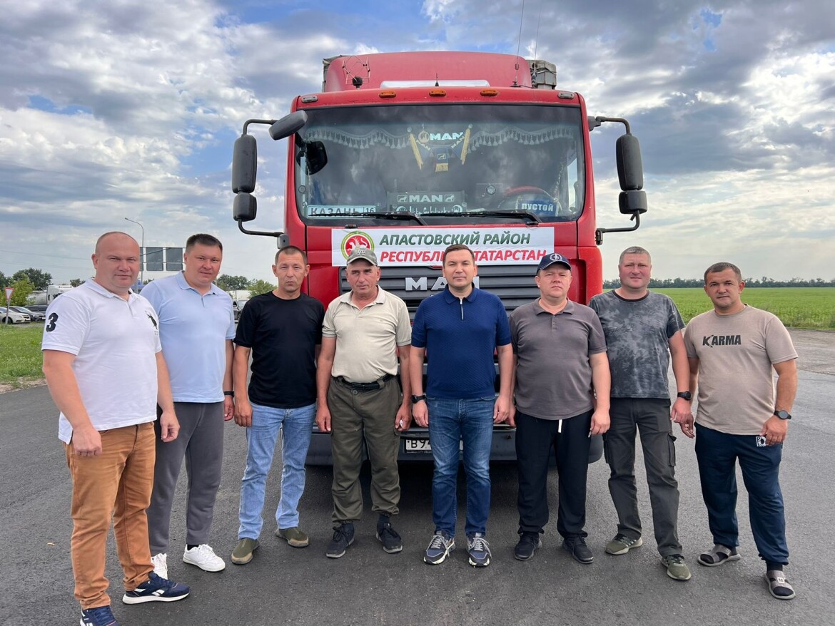 Делегация во главе с главой Апастовского района Айратом Зиганшиным прибыла в зону специальной военной операции. Здесь татарстанцы встретились с военнослужащими, расспросили об их положении, передали гостинцы, приветы из родных краев. Также были доставлены строительные материалы по просьбам жителей подшефного города Рубежное.
