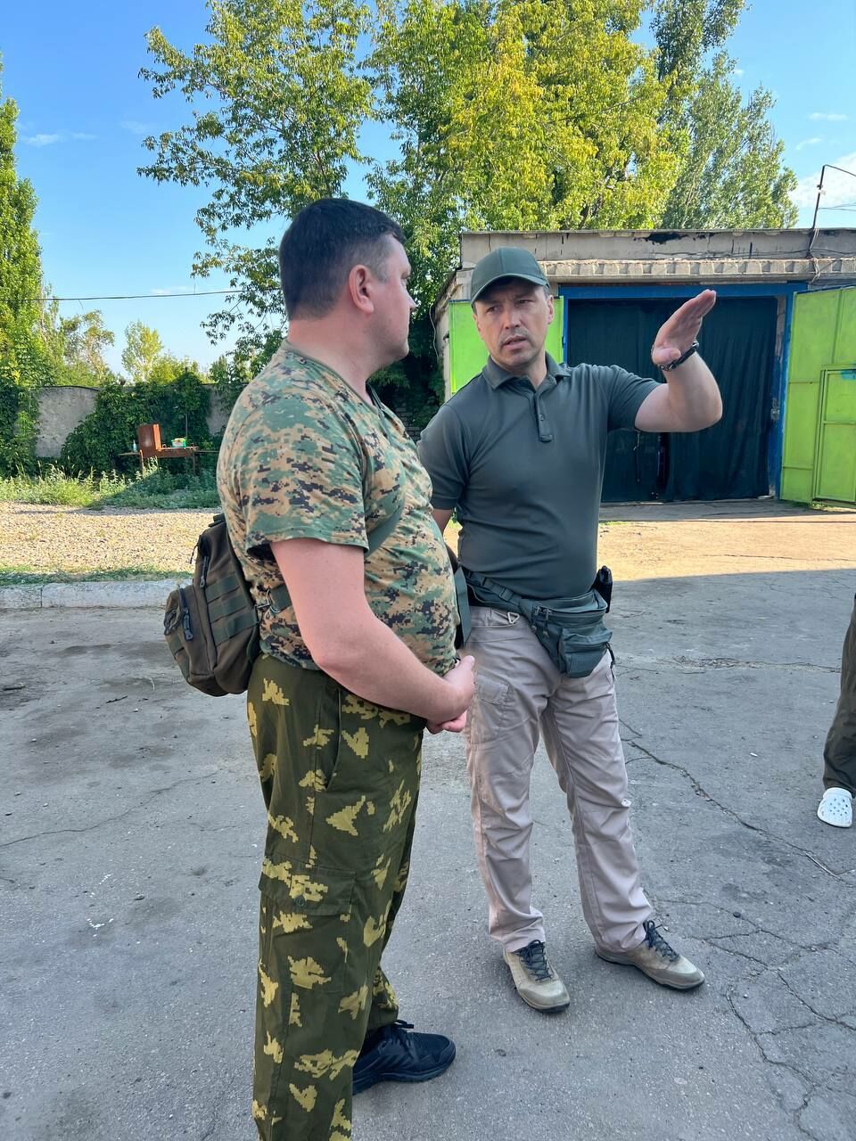 Заместитель премьер-министра РТ Фаниль Аглиуллин вместе с первым замминистра строительства РТ Алексеем Фроловым встретились в Лисичанске с двумя бригадами ремонтников из Казани и Набережных Челнов.