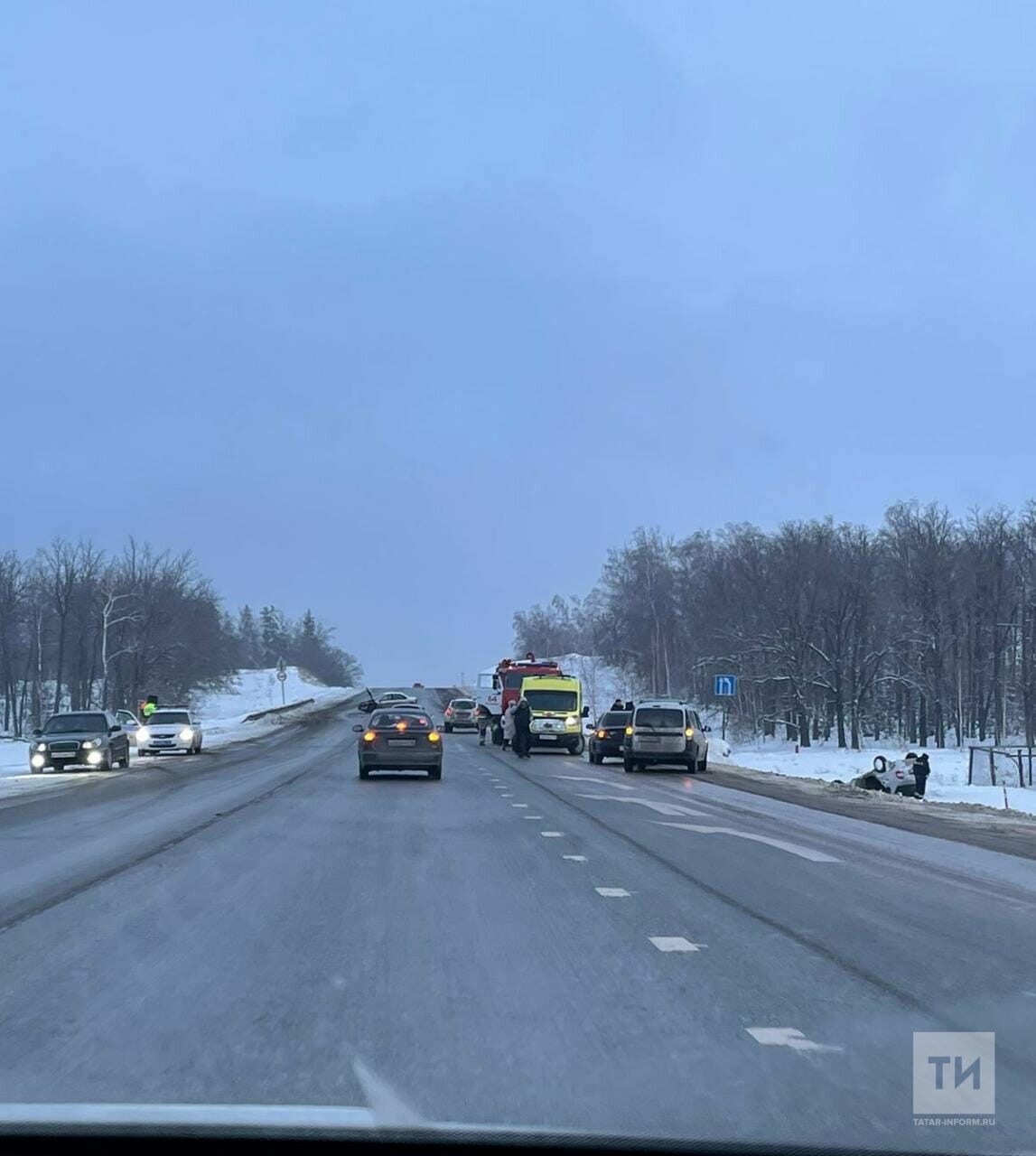 Как рассказали «Татар-информу» очевидцы, дорогу не поделили «Лада Гранта» и «Лада Калина». От мощного удара «Калина» слетела с трассы в кювет, где перевернулась на крышу.