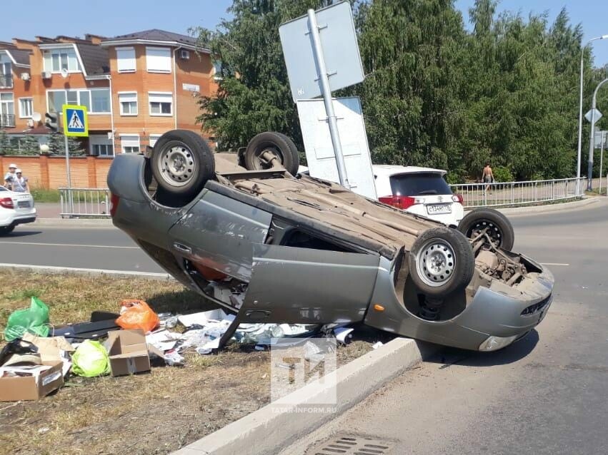 Авто перевернулось на крышу после столкновения с другим в РТ, один из водителей пострадал