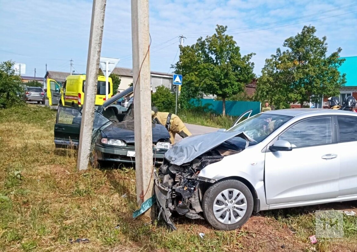 Авто влетело в столб, столкнувшись с легковушкой в Татарстане, водитель в больнице