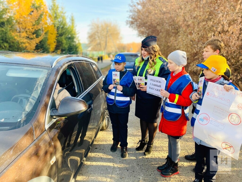 Автоинспекторы вместе с ЮИДовцами напомнили водителям из РТ о правилах перевозки детей