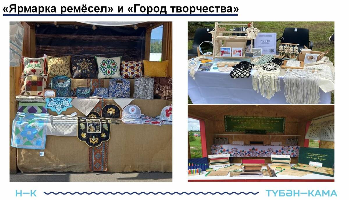 Свои работы привезут мастера со всей республики: национальные платки, вязаные изделия, игрушки, кожаные и текстильные работы, аромапродукция, украшения, элементы интерьера и многое другое. На отдельной выставке представят творчество художника Ильдуса Муртазина – от образа Сююмбике до полотен о СВО.