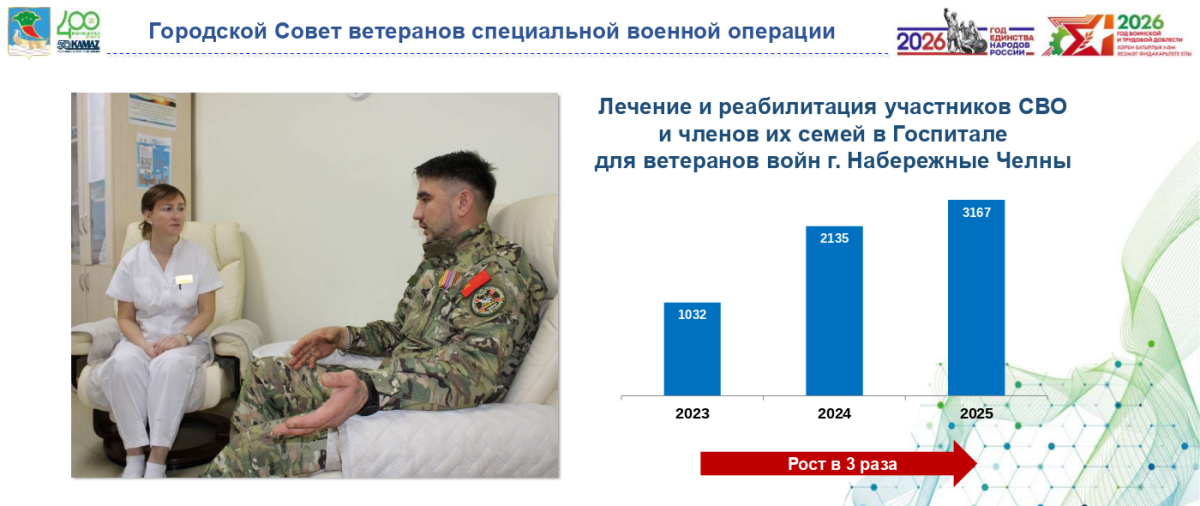 По его словам, нагрузка на медицинские учреждения растет: в 2025 году в Госпиталь для ветеранов войн обратилось более 3 тысяч участников СВО и членов их семей, что в 1,5 раза превышает показатели 2024 года. Рост с 2023 года составил трехкратное увеличение. По прогнозам, после окончания спецоперации число граждан, нуждающихся в медицинской и психологической поддержке, может превысить 74 тысячи человек.
