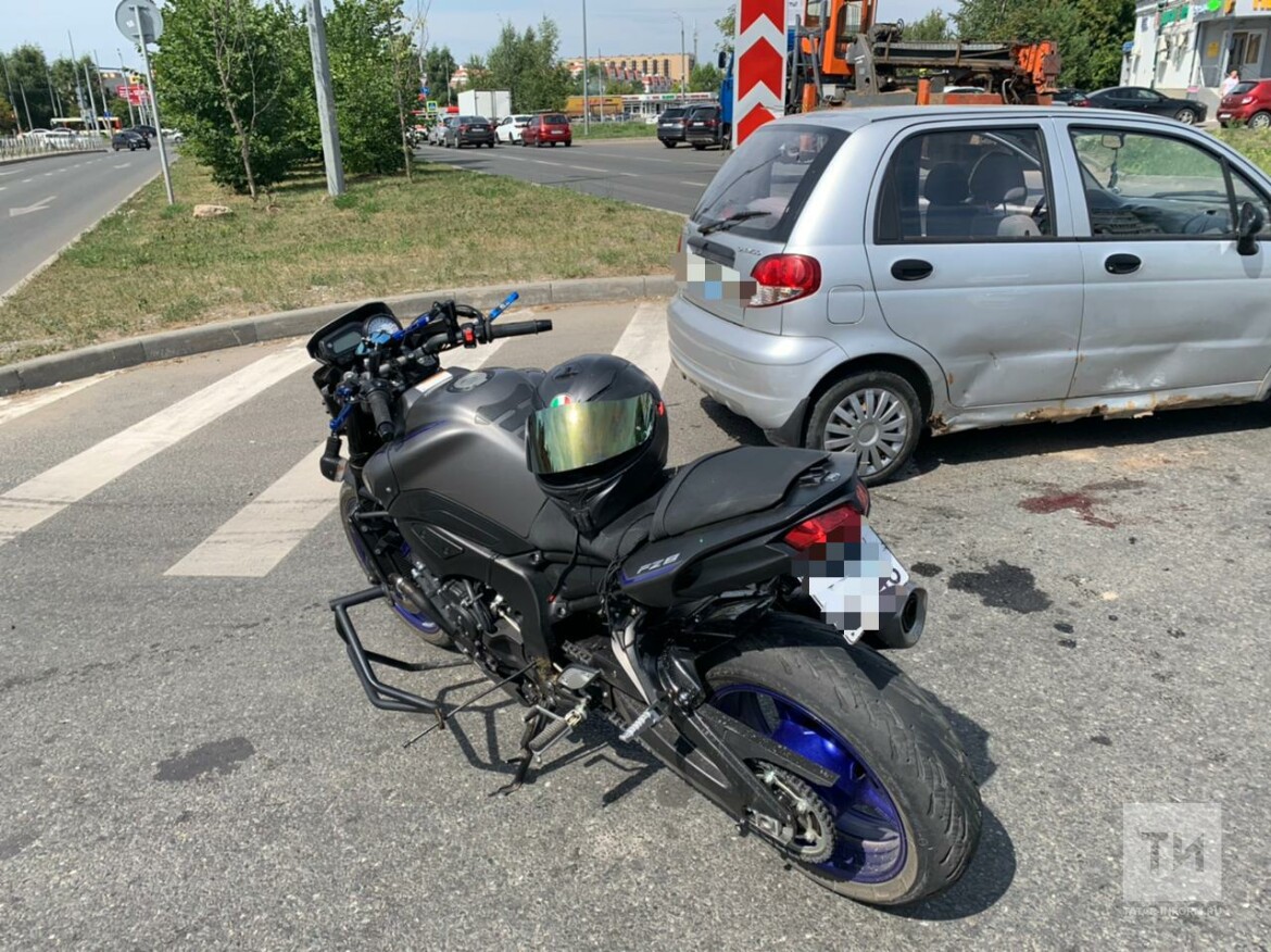 «В результате ДТП водитель мотоцикла получил рваную рану ноги и был доставлен в больницу. На месте работают сотрудники ГИБДД. Обстоятельства аварии устанавливаются», – пояснили ИА «Татар-информ» в городской Госавтоинспекции.