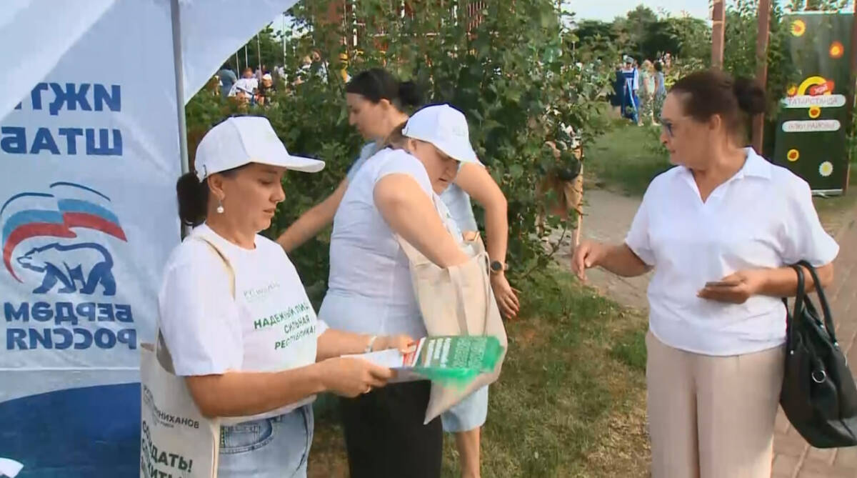 Параллельно с фестивалем работали информационные палатки партии «Единая Россия», где волонтеры раздавали материалы в поддержку кандидата на должность Раиса РТ – Рустама Минниханова.