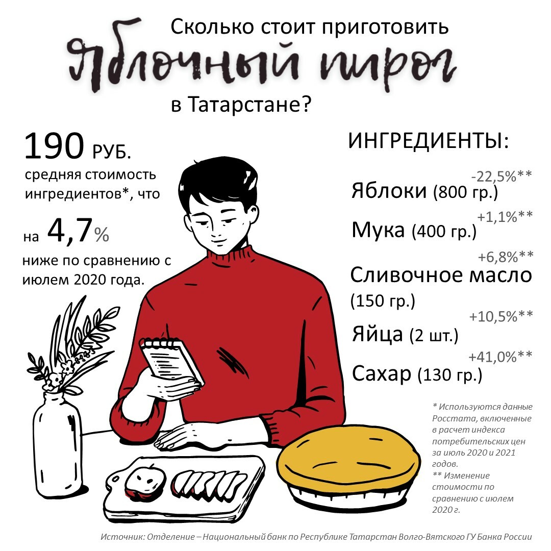 Эксперты Отделения Банка России по Татарстану – Национального банка по РТ подсчитали, сколько в республике стоят ингредиенты для приготовления яблочного пирога.