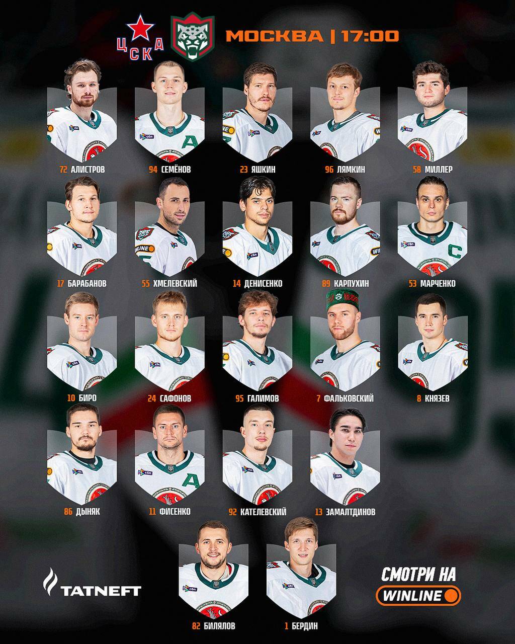 Казанский «Ак Барс» в своих социальных сетях огласил состав на первый выездной матч против московского ЦСКА.