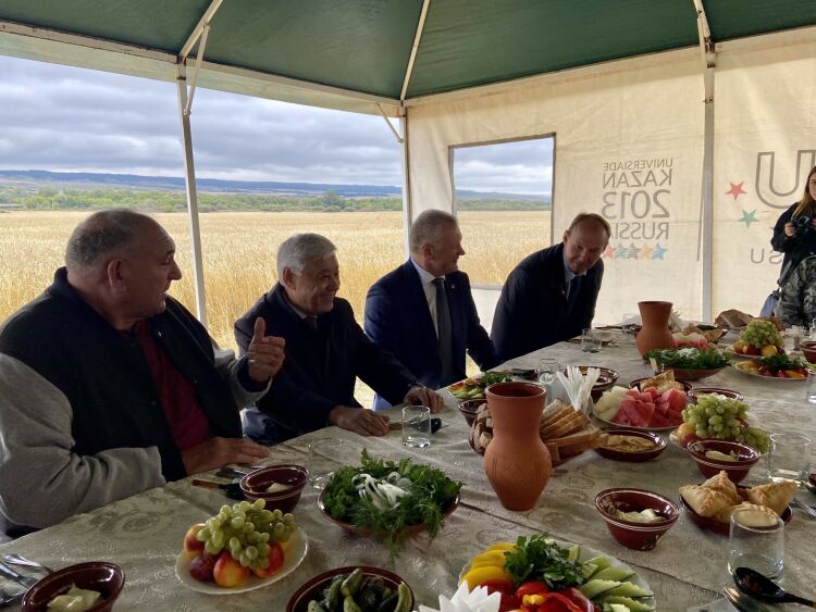 Председатель Госсовета РТ Фарид Мухаметшин позавтракал на полевом стане с бавлинскими комбайнерами и обсудил перспективы развития района.