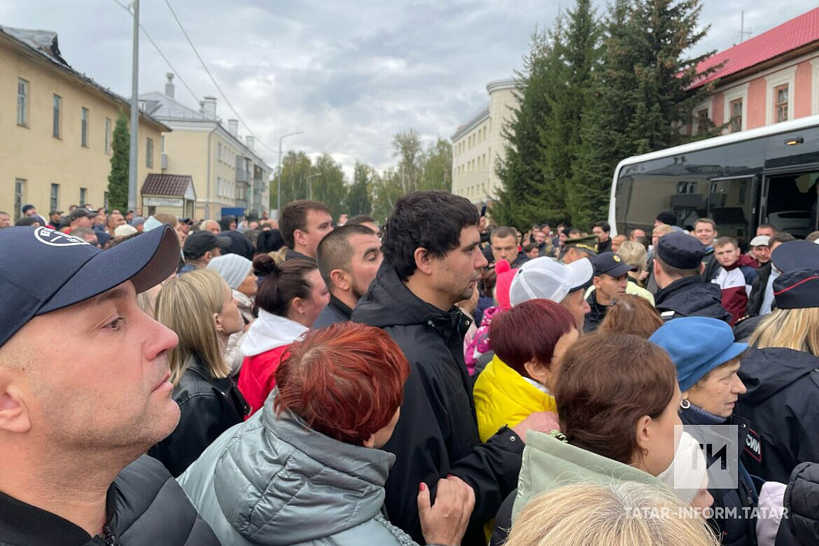 В разных районах Татарстана в торжественной обстановке проходят проводы мобилизованных. У дверей Домов культуры, или же военных комиссариатов выступают главы районов, имамы и представители церкви. «В других районах главы приходили. А у нас что… И проводить по-человечески не умеют. Толкают, гоняют туда-сюда как стадо баранов” негромко возмущается пришедший проводить сына мужчина.