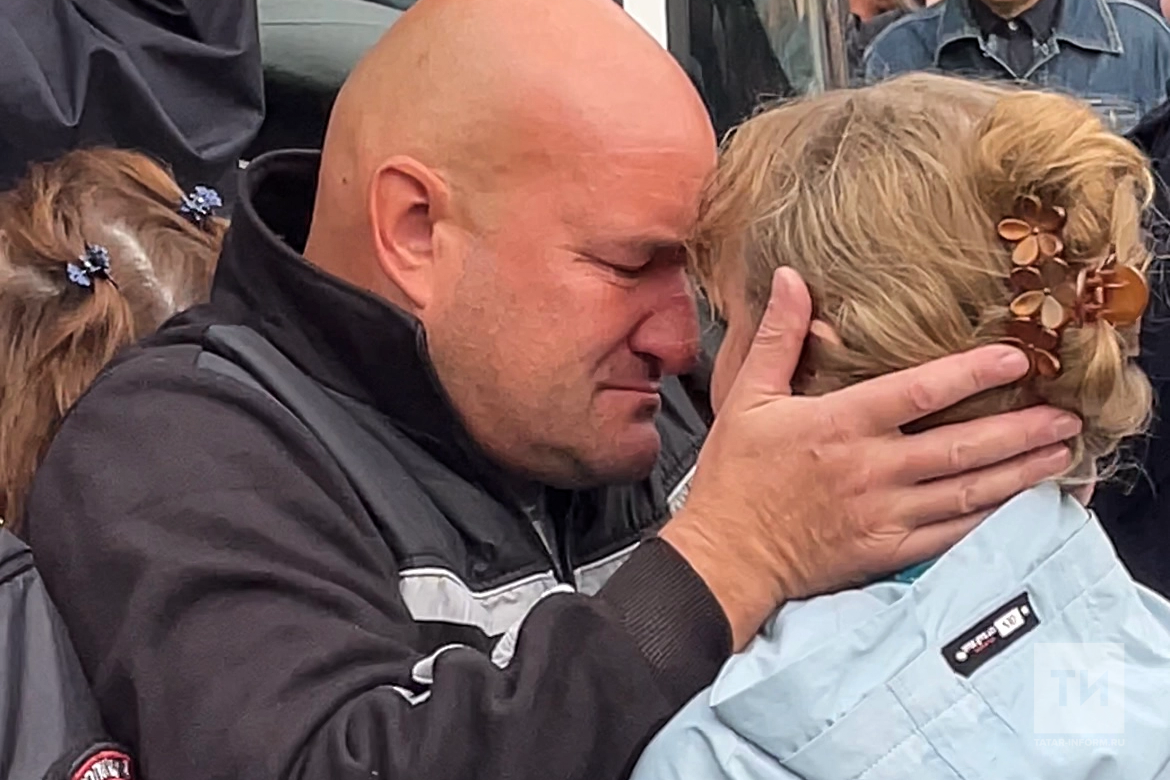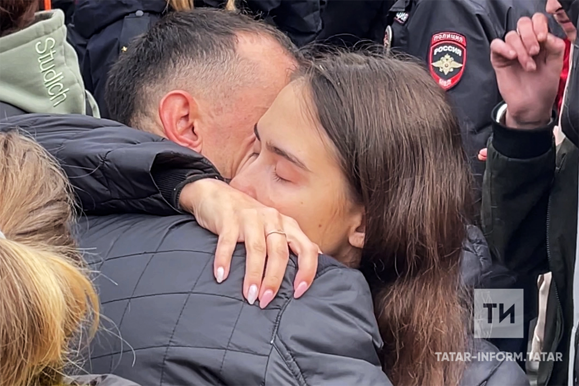 Перед отъездом второго автобуса к этой паре подошли пожилая женщина с двумя детьми и женщина средних лет. Молодая крепко обняла мужчину, заливаясь слезами, поцеловала в щеку. Это оказалась родная сестра 33-летнего Дамира Минсалихова из Осиново.