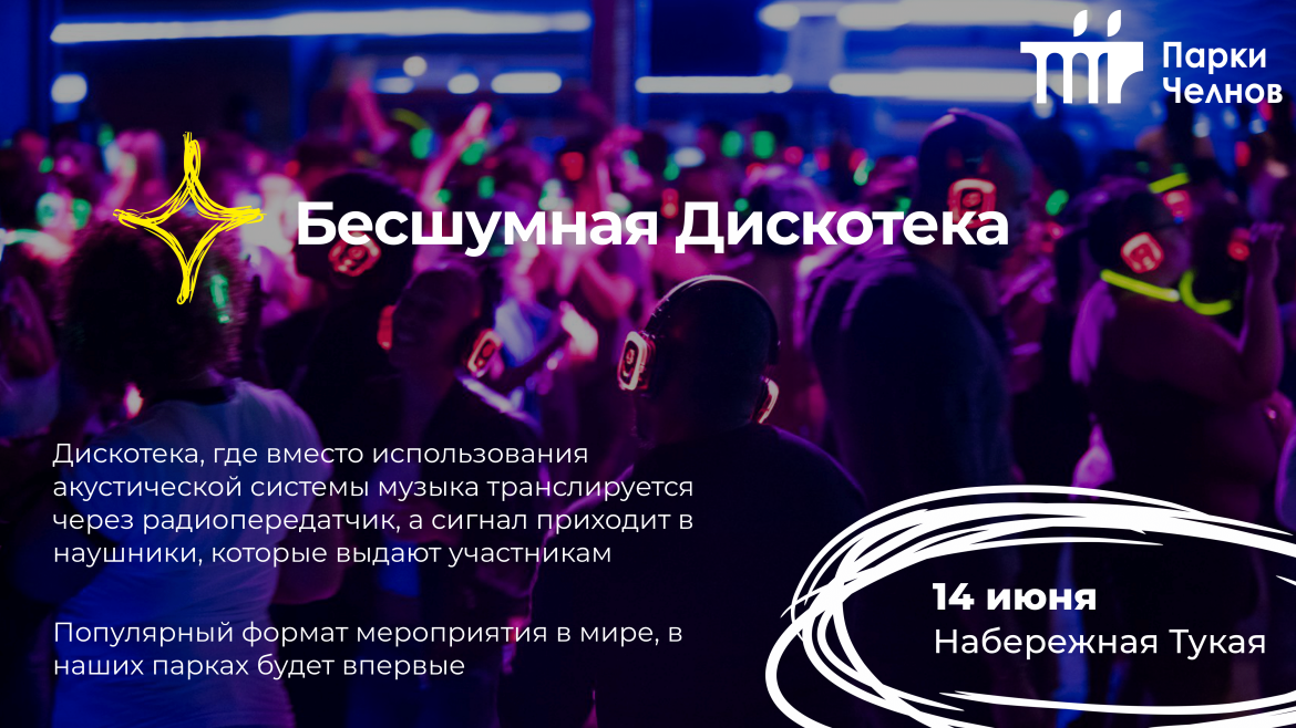 5 июня в парке «Гренада» представят настольную игру по типу «Монополии», но с указанием городских мест Челнов. 14 июня челнинцев ждут на бесшумную дискотеку на набережной Тукая. На пирсе можно будет смотреть на закат и наслаждаться летом.
