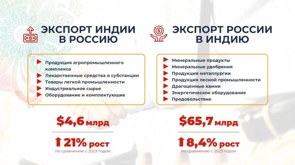 «Я посмотрела, какой у Индии экспорт по данным международных отчетов. 445 млрд долларов – это экспорт во все страны мира за 2024 год. Какая доля России? Я не уверена, что это будет достойный ответ на нашей сегодняшней встрече», – сказала глава АИР, намекая на невысокую долю РФ в общем объеме.
