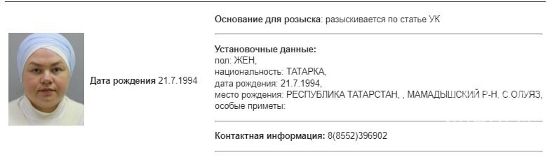Ориентировку на 29-летнюю женщину разместили на сайте МВД России в разделе «Внимание, розыск!».