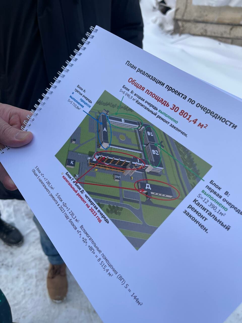 Капитальный ремонт блока «А» ведется с апреля прошлого года. Общая площадь этой части здания — более 5 тыс. кв. метров. В настоящее время специалисты завершают отделочные работы.