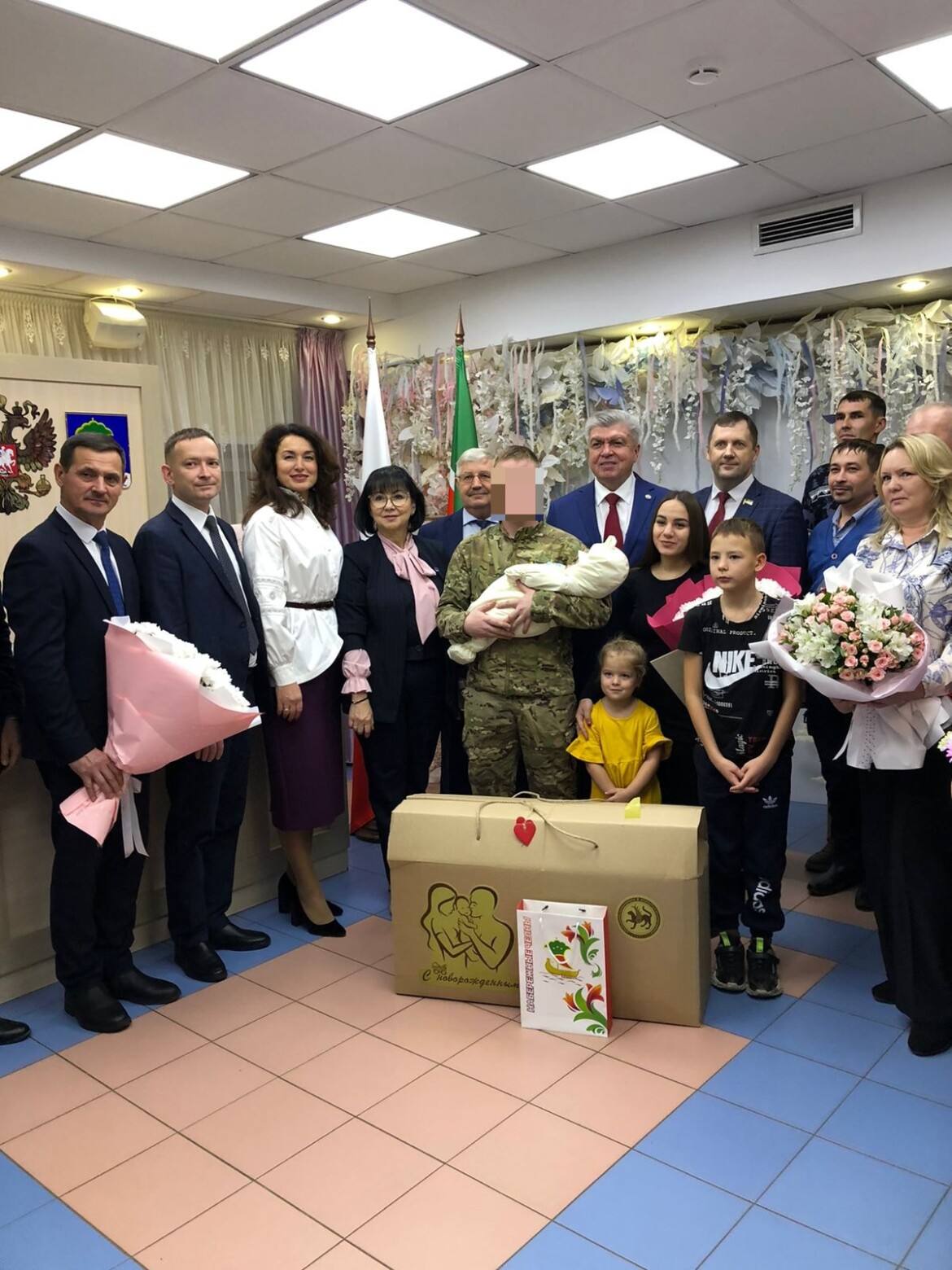 В семье челнинского военнослужащего с позывным Ураган случилось пополнение.Так совпало, что боец смог побывать на выписке супруги и их второго ребенка. Поздравить молодых родителей приехали родные, близкие, а также мэр Набережных Челнов Наиль Магдеев.