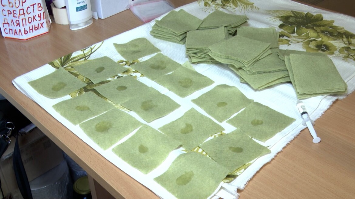 «Вот эта губка, немного лосьона в пакет делаешь, воздух убираешь. Туда тряпочку добавляешь. Смачивают водой и насухо вытирают», — пояснил волонтер Никита Минеев.