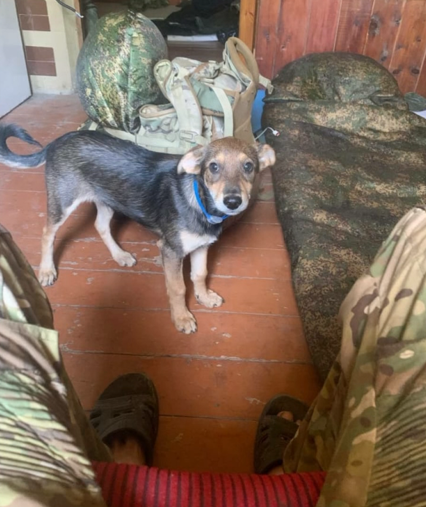 На передовой Камай тоже не забывает о бездомных животных, всего за месяц в зоне СВО он уже успел приютить щенка. Кличку ему пока не придумали, боец называет нового четвероного друга Собакен.