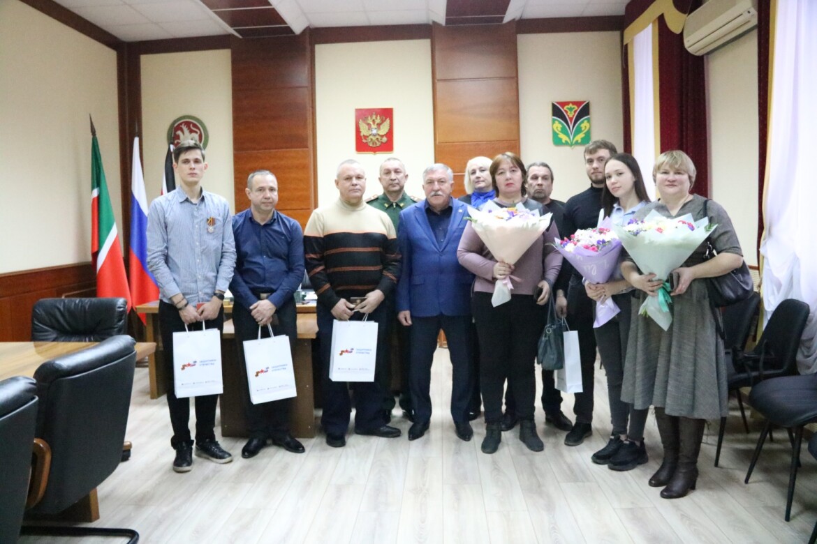Глава Лениногорского района Рягат Хусаинов встретился с военнослужащими — участниками спецоперации. Он передал бойцу медаль «За воинскую доблесть» II степени, остальным военным — удостоверения ветерана боевых действий.