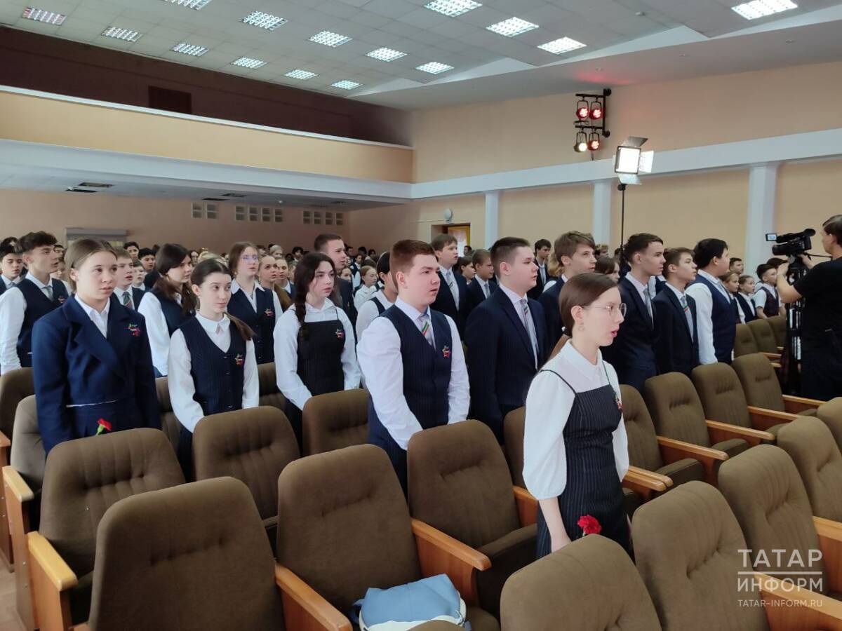 Эта парта Героя стала первой в лицее. Церемония открытия началась с выноса государственных флагов, затем прозвучали гимны России и Татарстана.