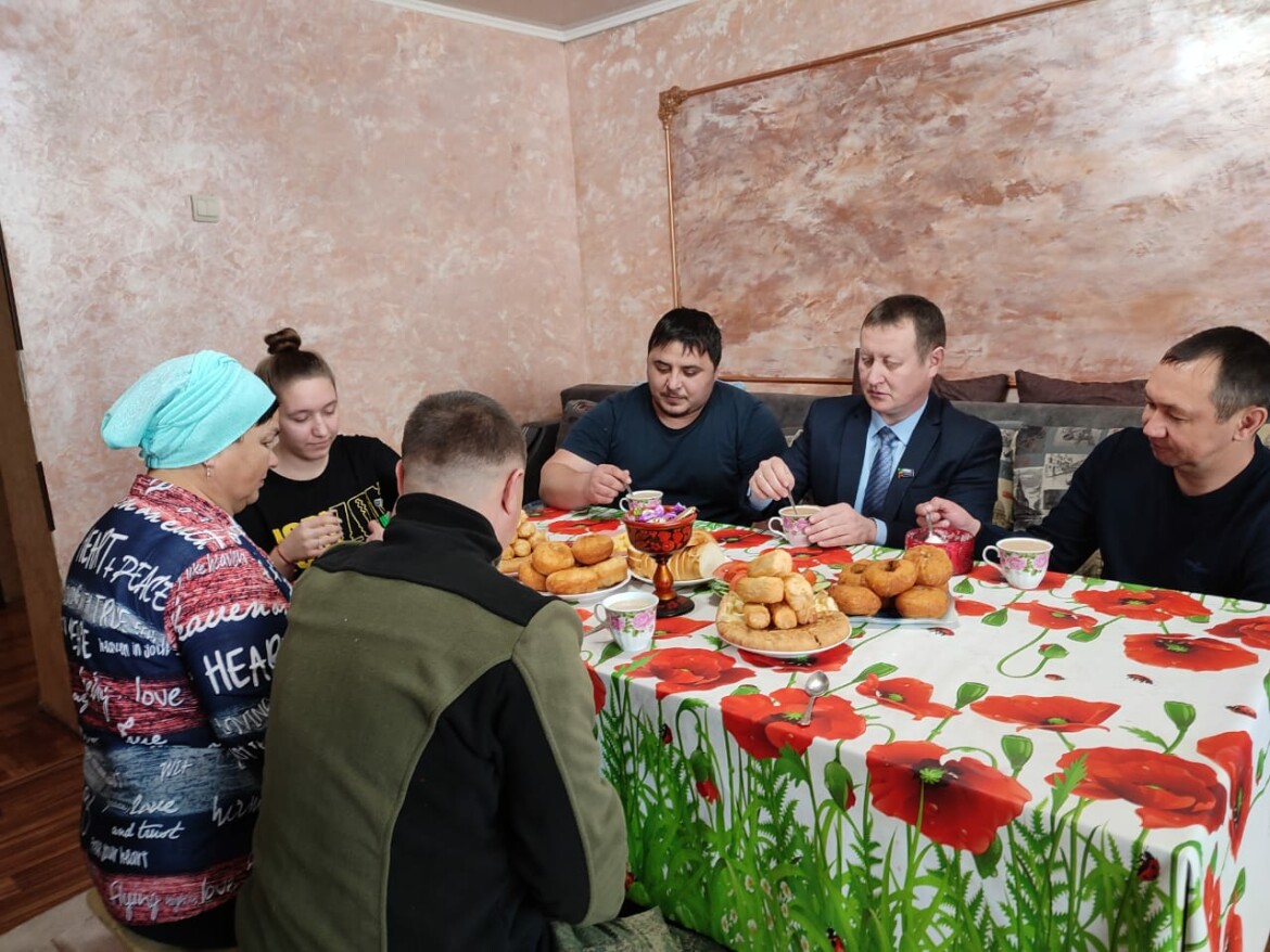 Военнослужащий вернулся в родное село Каркали Лениногорского района на несколько дней, чтобы оформить документы на подаренный автомобиль, уладить все формальности, а потом вернуться к сосолуживцам. Также боец успел повидаться с родными и близкими. Дома его встречали за щедро накрытым столом.