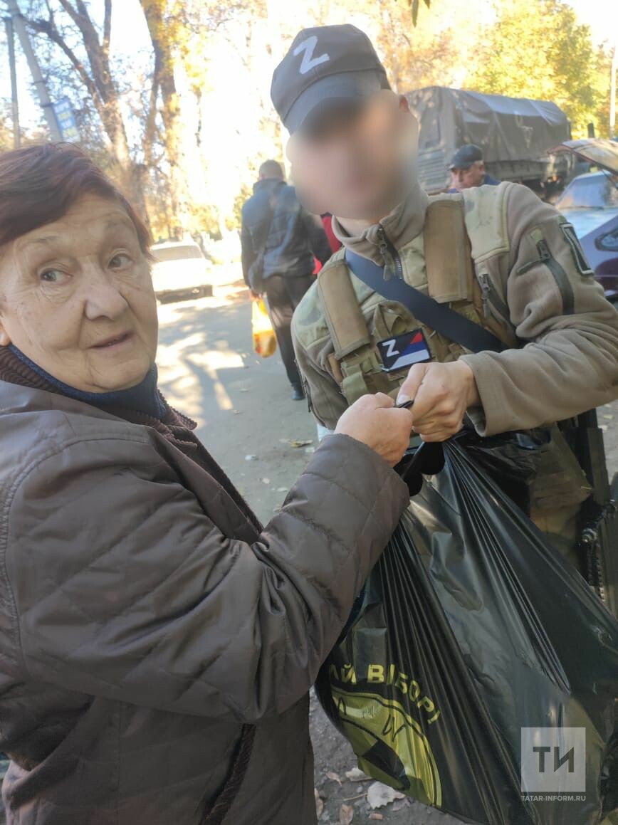 На Украине бойцы татарстанского батальона «Тимер» раздают гуманитарную помощь местным жителям.