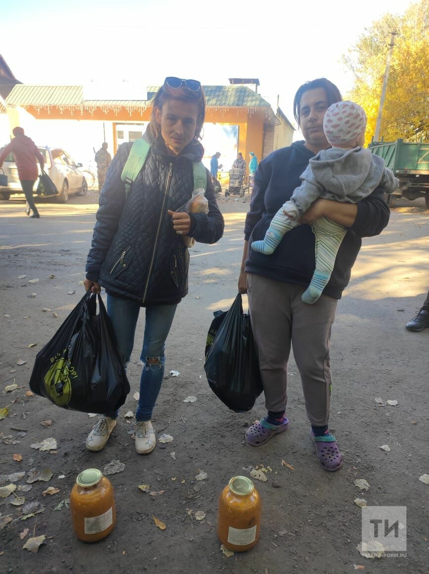 На фото, которые оказались в распоряжении «Татар-информа», видно, что семьи с детьми, пожилые люди получают из рук военных пакеты с продуктами.