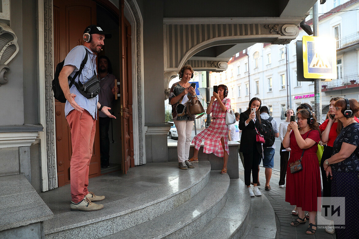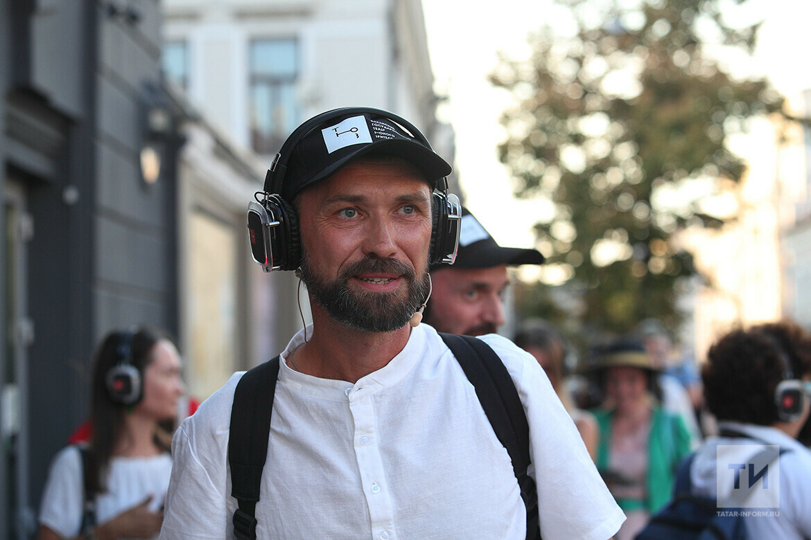 «Непросто предложить такую задачу артисту, который привык заходить сначала в гримерную, потом ему приносят костюм, и он выходит только на сцену. Совсем не каждый на это согласится. То, что вы наблюдаете в спектакле „Пешеходы“, — профессиональный подвиг. Тот текст, который произносили актеры, они пережили сами, и никто его не писал. Это уже третий подобный спектакль, когда мы раздвигает границы театра, а будут еще и четвертый, и пятый, и шестой. В каждом уголке театра будет свой спектакль. В этом спектакле очень не хотелось, чтобы, как в „Ночном трамвае“, звучал записанный текст, очень хотелось живого. 90-е (о них в основном идет речь в диалогах актеров — прим. Т-и) — это и мое тоже время. Этот спектакль ценен тем, что он про Казань. Это голоса Казани, воспоминания о Казани — он для тебя, если тебе интересен этот культурный код. В идеале я хотел бы, чтобы многие наши актеры могли в такой форме тоже поработать», — не стал скрывать Букаев.