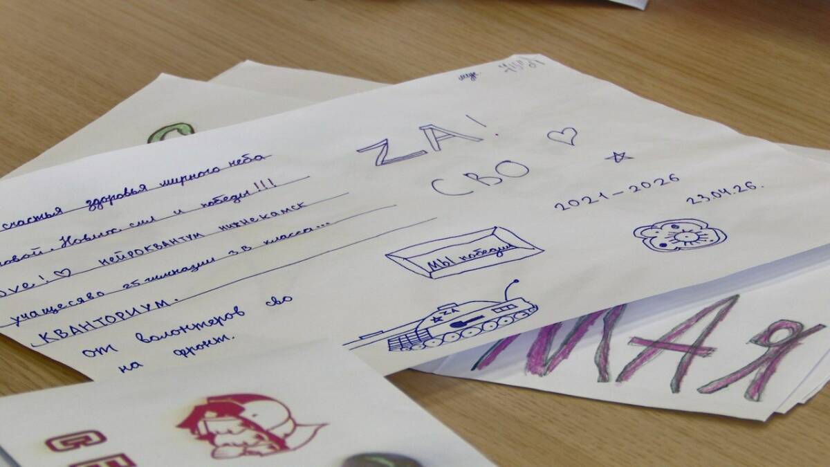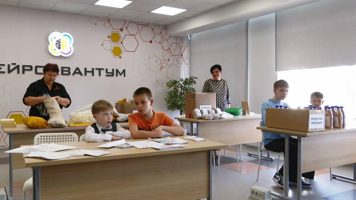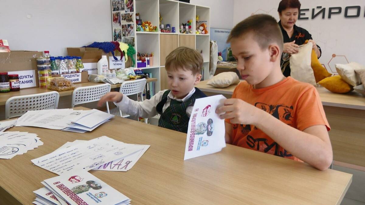 К сбору гуманитарной помощи активно подключаются и дети. Так, воспитанник кванториума Кирам Якупов перед занятиями пишет письма бойцам и помогает комплектовать посылки.