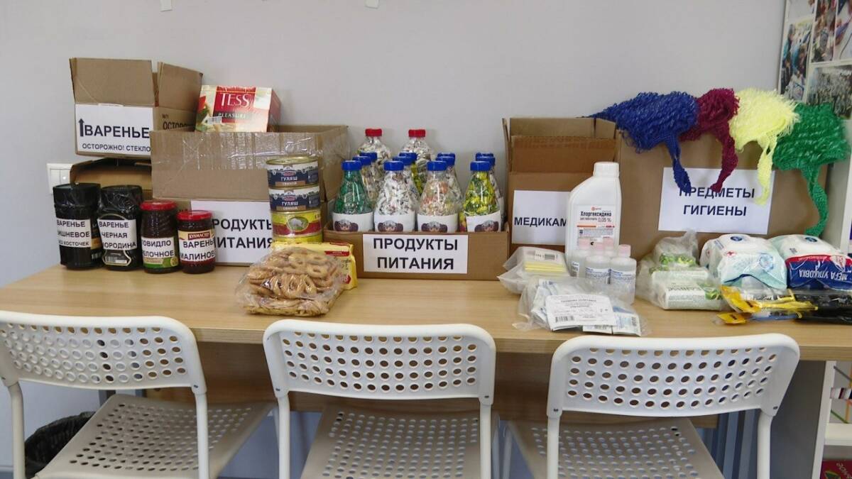 В состав гуманитарной помощи входят продукты питания, средства гигиены, медикаменты, подушки и письма. За месяц в кванториуме собирают свыше 100 килограммов груза.