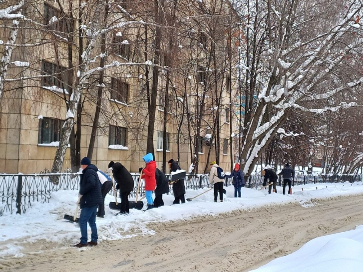 Школьники и студенты в субботу помогли очистить тротуары и дорожки, ведущие к учебным заведениям.