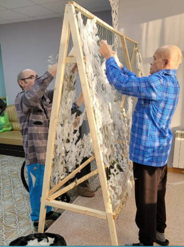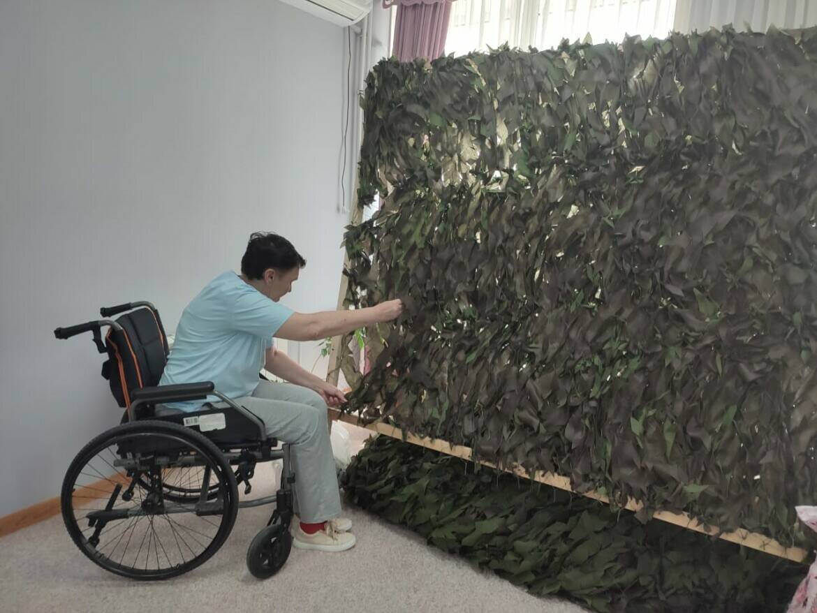 Освоили пенсионеры и мастерство плетения маскировочных сетей. В это дело большой вклад вносит Раиса Пигалева — инвалид с 2022 года. По медицинским показаниям ей ампутировали ногу, но, несмотря на это, она остается позитивным, неунывающим человеком.