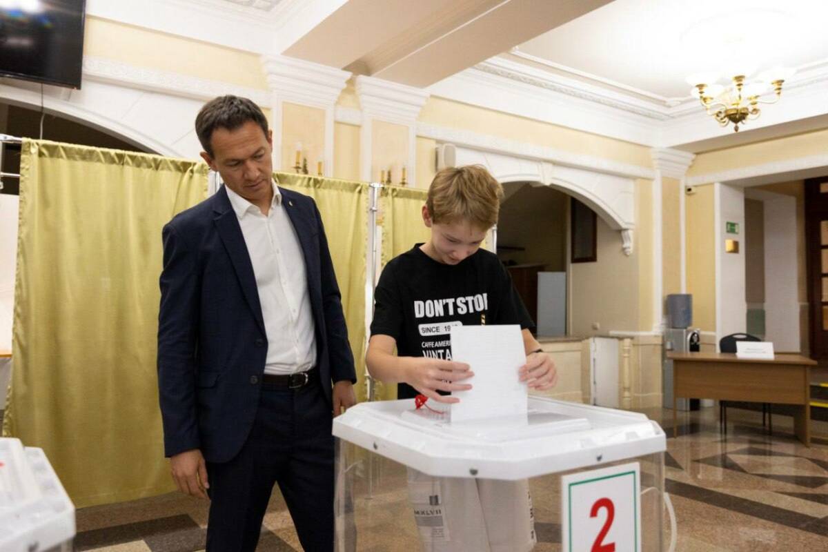 «Будущее в наших руках»: мэр Альметьевска пришел на выборы с семьей