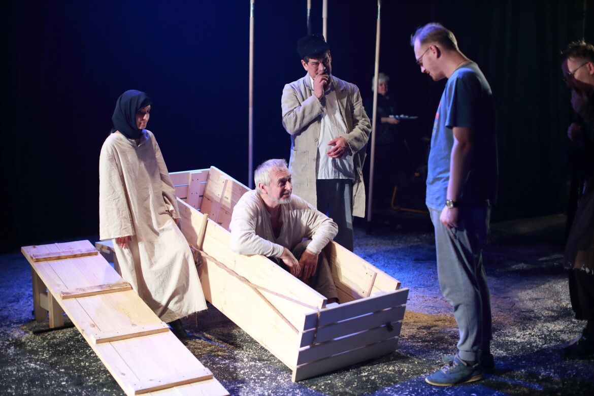 Спектакль стал премьерой нынешнего театрального сезона, в нем заняты четыре актера: народные артисты Татарстана Александр Кочетов и Владимир Пряхин, заслуженный артист РТ Рустам Файздрахманов и неоднократная победительница номинаций республиканской театральной премии «Тантана» Лейсан Хабибуллина.