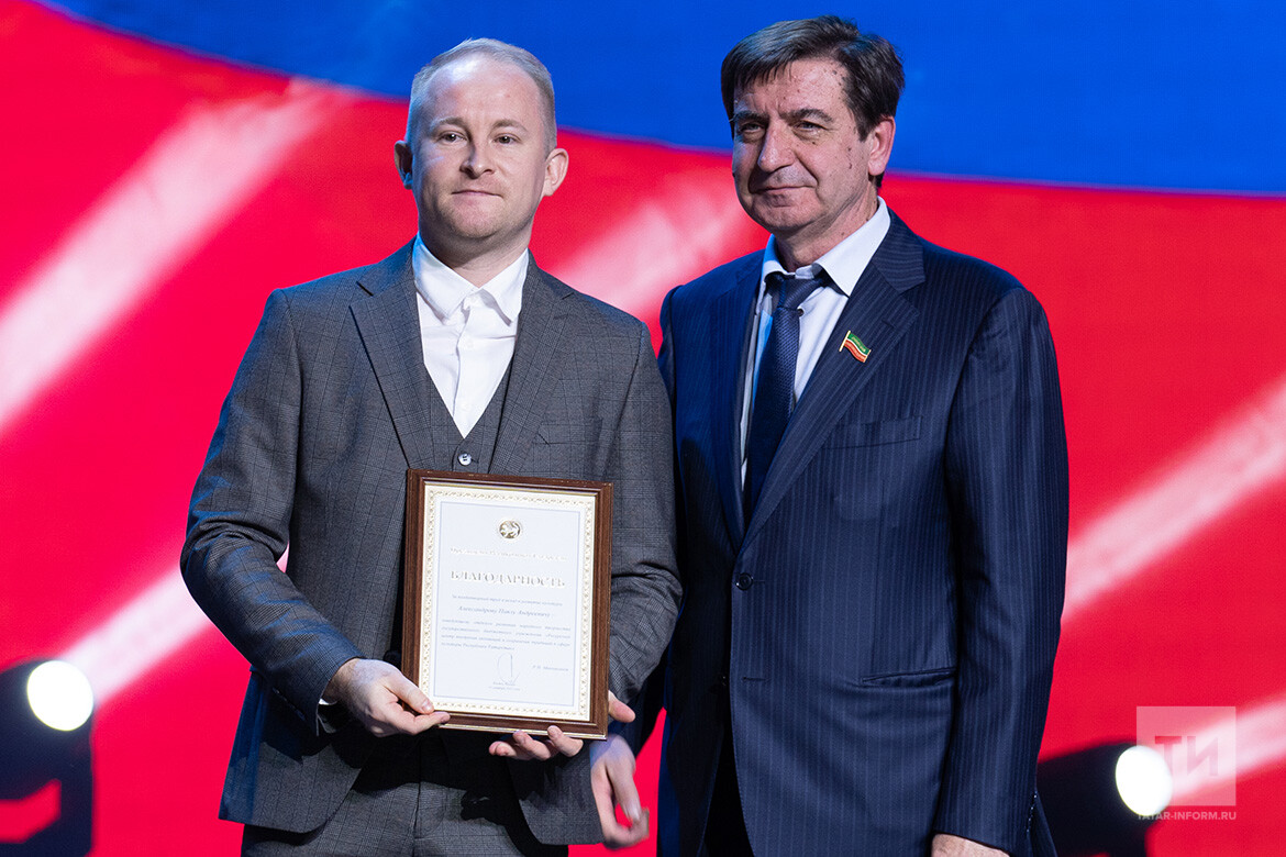 Благодарность Президента РТ объявлена певцу, автору и исполнителю песен на удмуртском языке Павлу Александрову, заместителю директора по творчеству Районного координационно-методического центра культуры Зеленодольска Дмитрию Бечину.