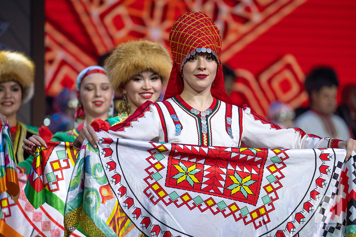 Торжественная часть продолжилась концертной программой, на которой выступили лауреаты Республиканского этнокультурного фестиваля «Наш дом — Татарстан». Двери фольклорного братства открыли татарские коллективы, затем на сцене были показаны номера, представляющие культуры и традиции более полутора десятков народов Поволжья, Кавказа, Средней Азии.