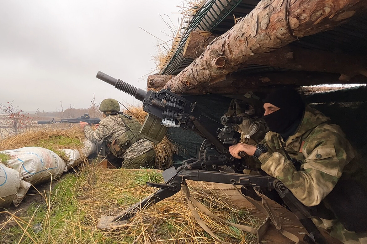 Чтобы продемонстрировать, в каких условиях в зоне специальной военной операции служат пехотинцы из его взвода, Якты проводил нас к наблюдательному посту, вблизи которого находится спуск в окопы. Он укутан имитирующей траву маскировочной сеткой и присыпан сверху грунтом, чтобы противник не смог обнаружить позиции бойцов.