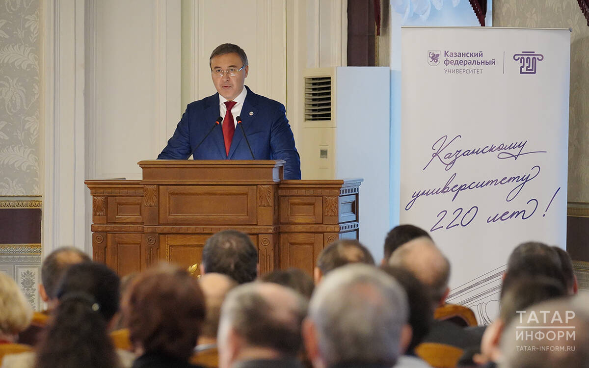 Он добавил, что на протяжении всех 220 лет Казанский университет решал три важные государственные задачи: развитие науки, подготовка юношей и девушек к взрослой жизни и внесение вклада в социально-экономическое развитие региона и страны в целом.