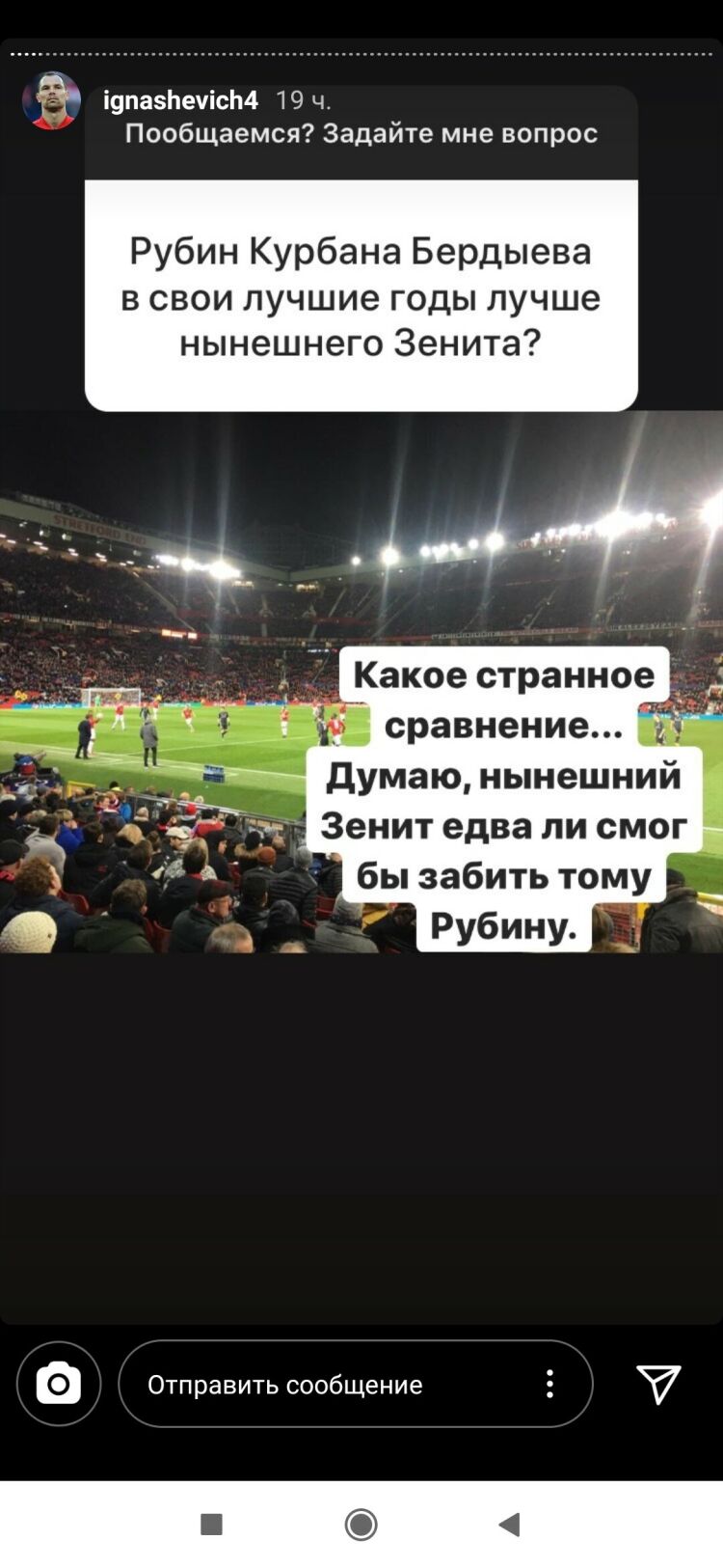 «Думаю, нынешний „Зенит“ едва ли смог бы забить тому „Рубину“», — написал Игнашевич.