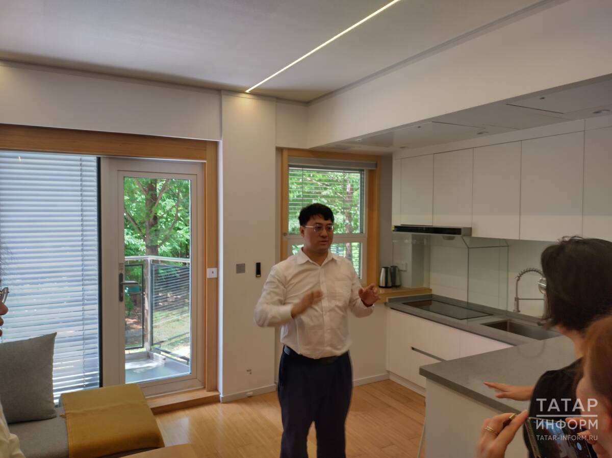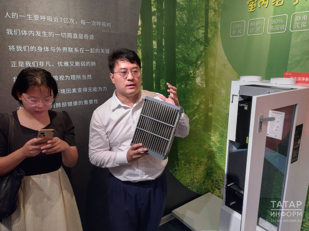 Этот шкафчик, рассчитанный на 120-метровую квартиру, фильтрует воздух и уничтожает бактерий и пыльцу. Воздух, по словам гида, становится чище в 1000 раз.
