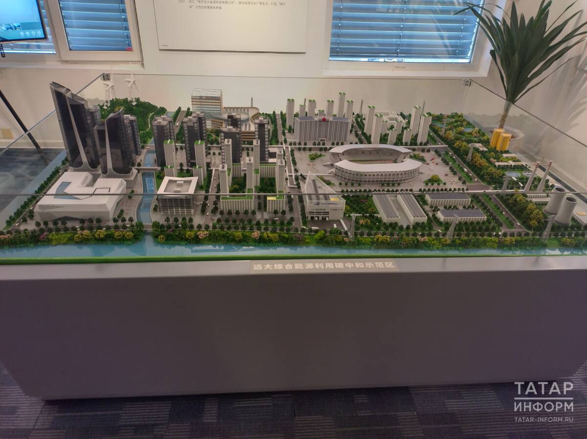 Макет нового района города Нанкин площадью 15 млн квадратных метров. В правом нижнем углу – электростанция, благодаря которой в районе бесплатные тепло и холод и снижение выбросов углекислого газа, равноценное посадке 6 млн деревьев в год. «Подходит ли она для северных российских городов?» – спросили мы. «No problem», – ответил гид.