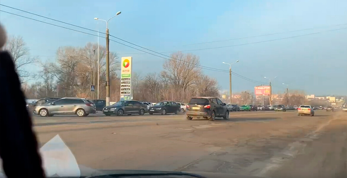 Судя по видеокадрам из Киева, никакой бомбардировки там нет, зато появились огромные автомобильные очереди на АЗС и на выездах из города