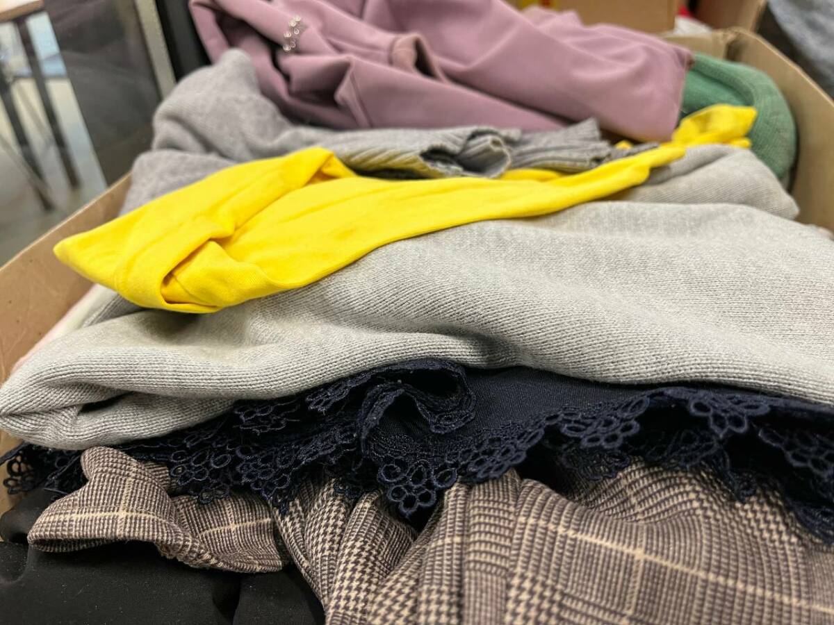 Перед тем, как вещи отправят жителям Курской области, сотрудники пункта сбора всё проверяют и распределяют по разным коробкам.